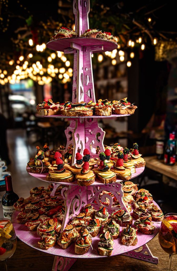 En un ambiente familiar, usted ve desfilar baguettes, copas gigantes de clericot (cuando le digo gigantes, son GIGANTES), tablas de quesos y carnes frías, ensaladas, mariscos, tapas españolas, postres y un sinfín de platillos perfectamente adornados, lucidores, pues. Todo ahí es bonito, delicioso y accesible en costo-beneficio.