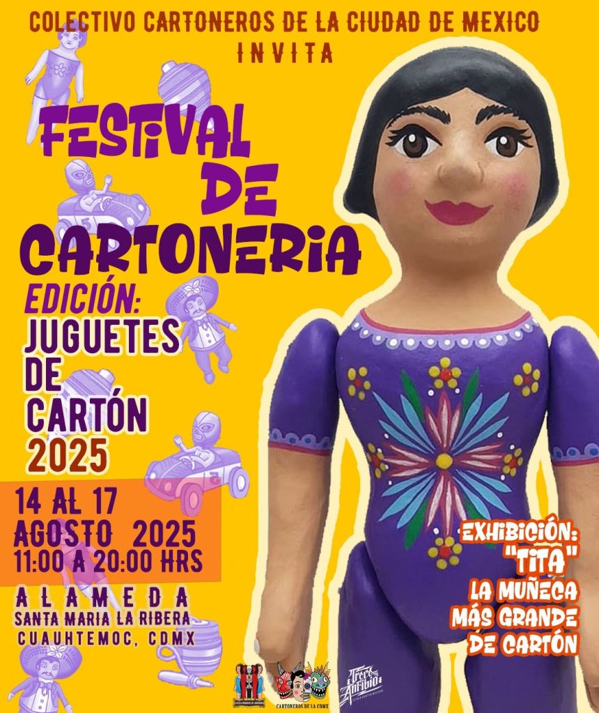 En esta edición dedicada al juguete podrás conocer a la muñeca Tita,una creación de cartón de 6 metros de altura , además de que el evento contará con diversas actividades que van desde talleres, cuenta cuentos, rifas y mucho más.