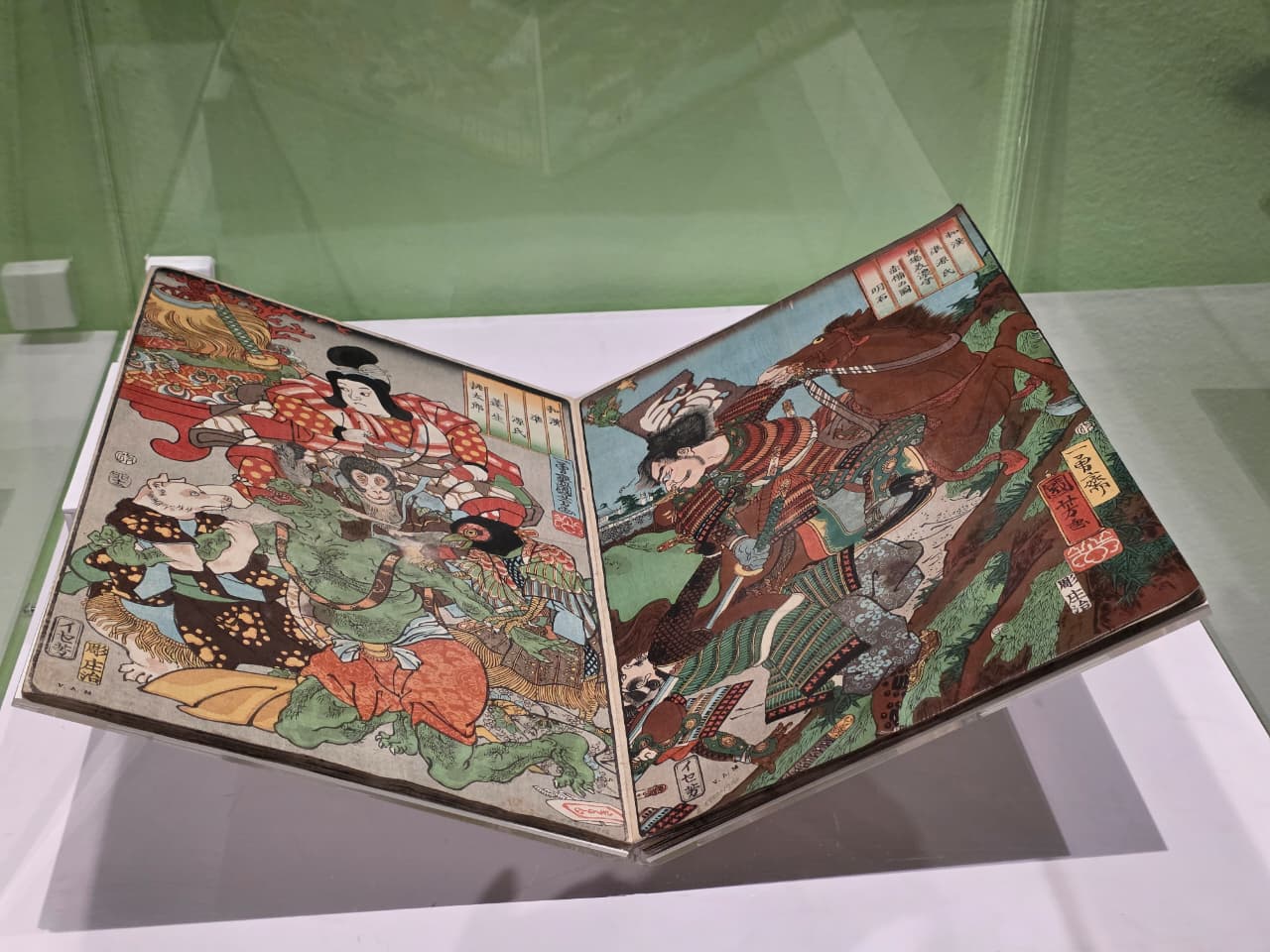 Entre las piezas destacan Montañas de primavera, №. 2 de Totoya Hokkei, varios diseños de ternurines, figuras y grabados de Momotarō, además de un biombo con pinturas de animales y humanos (¡reto: encuentra a todos!).