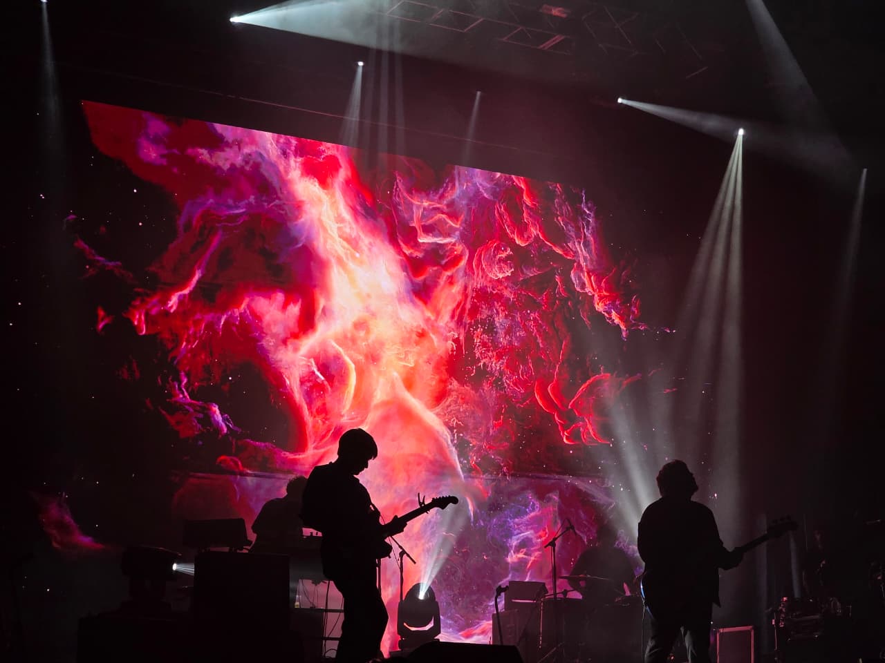 Uno de los momentos más memorables llegó con La noche eterna, acompañada de visuales cósmicos que envolvieron al público en un ambiente íntimo, casi galáctico. El coro retumbó en cada rincón y dejó claro que esa canción es ya un himno compartido.