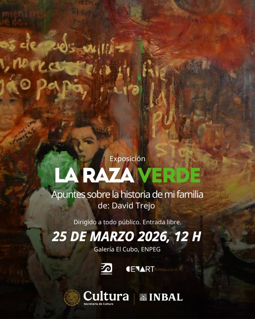 La Escuela Nacional de Pintura, Escultura y Grabado “La Esmeralda” (ENPEG), perteneciente a la Subdirección General de Educación e Investigación Artísticas (SGEIA) del Instituto Nacional de Bellas Artes y Literatura (INBAL), presentará el 25 de marzo, a las 12 horas, en la galería El Cubo, la exposición La raza verde: Apuntes sobre la historia de mi familia, del egresado David Alejandro Gómez Trejo.